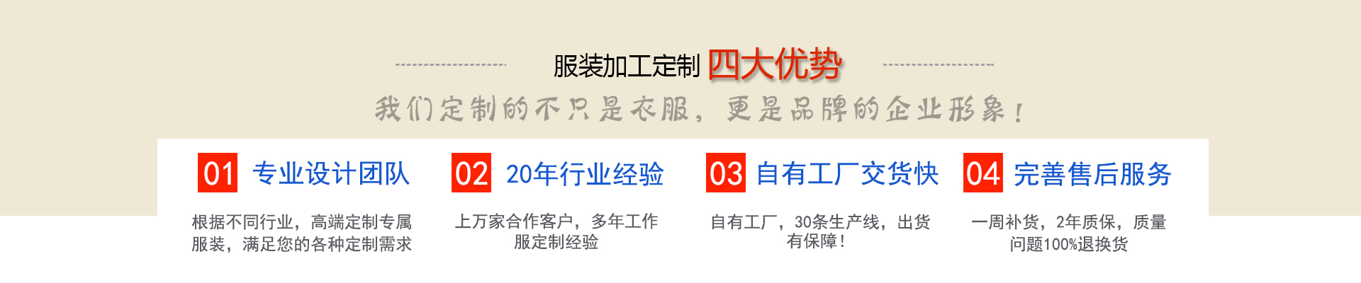 提供商務套裝、襯衫、工服職業裝、工作服、沖鋒衣、T恤衫、酒店制服等各行業工服定制